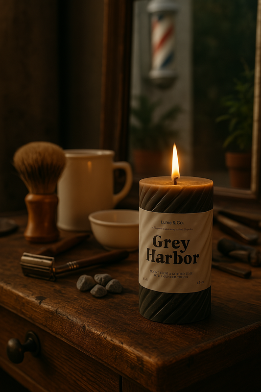 Grey Harbor Jar Candle 90g | Vintage Barbershop Scent – Lume & Co