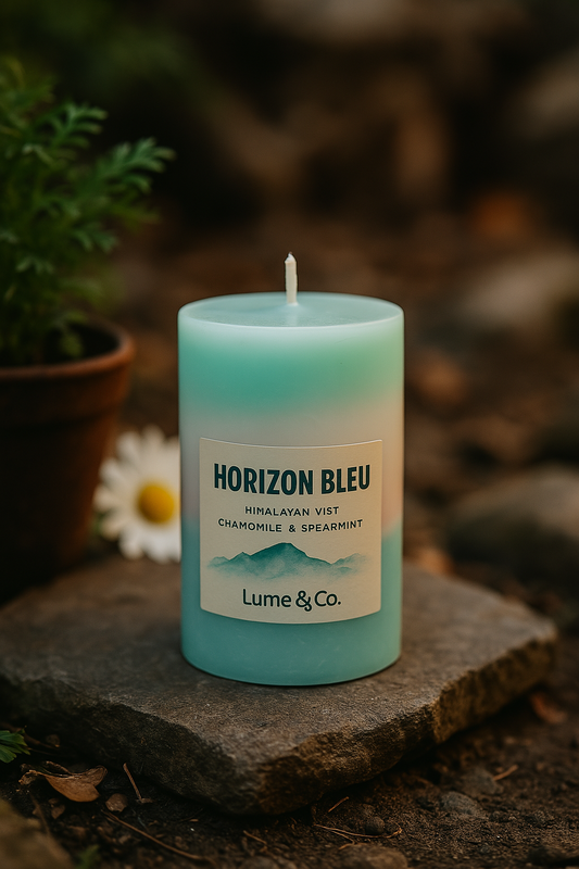 Horizon Bleu Pillar Candle | Himalayan Mist & Chamomile Scent – Lume & Co