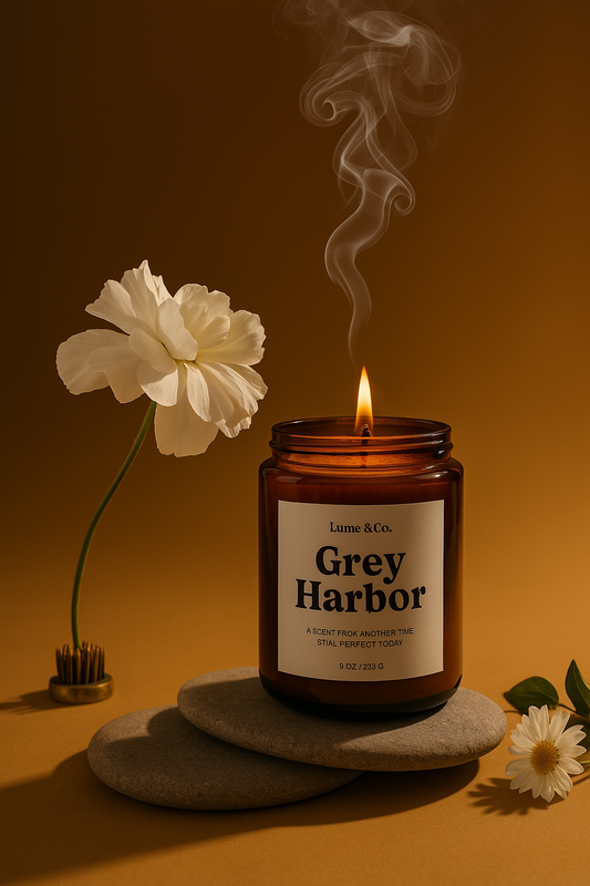 Grey Harbor Pillar Candle | Signature Vintage Scent – Lume & Co